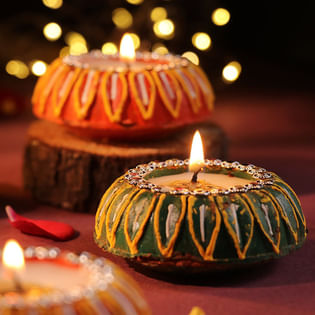 Lakshmi Ganesh Blocks N Hamsa Candle Holder