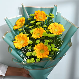 Radiant Pink And Yellow Gerbera Bouquet