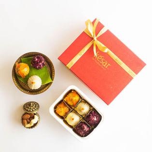 Kaju Katli Ice Ball Kesar Roll N Kaju Apple Mithai Box