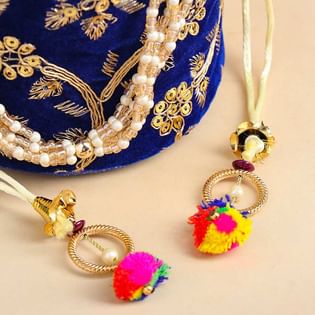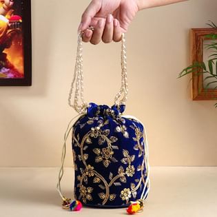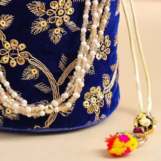 Chic Blue Embroidered Potli Style Bag