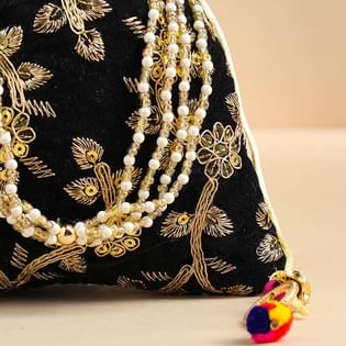 Stylish Black Embroidered Potli Bag