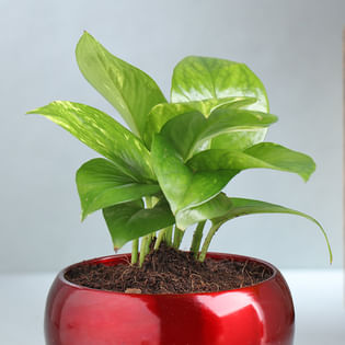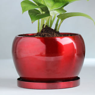 Green Money Plant In Metal Pot