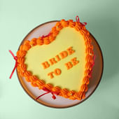 This Bride To Be cake sets the mood for a joyful pre-wedding celebration. The heart shape adds a tender touch, while the bright orange piping and neat lettering give it a fun, festive feel. Soft layers inside promise a smooth, comforting bite, making every slice feel special. With little ribbon accents and a clean finish, the cake becomes more than a treat—it becomes part of the moment. It’s the kind of centrepiece that brings everyone together, adds colour to the occasion and makes the bride feel loved, seen and truly celebrated.