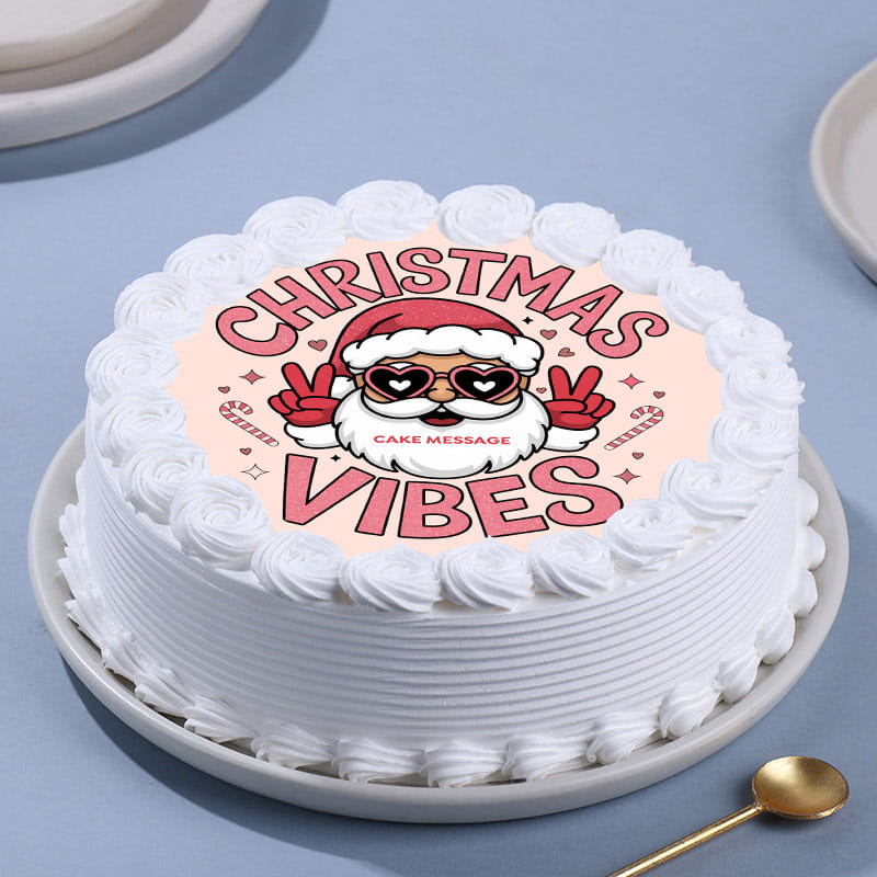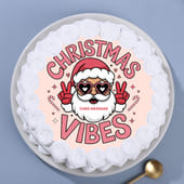 This fun and cheerful Christmas cake brings instant holiday energy to the table with its vibrant Santa design and bold Christmas Vibes artwork. The smooth finish and neat border give it a clean, modern look, while the customisable message space adds a personal touch to your celebration. You can choose any flavour you love, making it perfect for every kind of festive gathering. Whether it’s a family get-together, an office party, or a cosy Christmas moment at home, this cake sets the mood with sweetness and style.