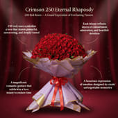 Leave a lasting impression on your loved one with this exquisite bouquet featuring 250 radiant red roses, carefully arranged to create a luxurious, eye-catching display. The rich hues symbolise love and passion, making this bouquet the perfect choice for expressing heartfelt emotions. Wrapped in elegant purple paper and finished with a satin ribbon, it’s sure to leave your partner in awe of its grandeur and beauty. Ideal for occasions like Valentine’s Day, it perfectly conveys what is in your heart. These Valentine roses truly make every moment unforgettable.