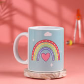 Brighten someone's day with this charming gift set, featuring a white ceramic mug printed with a colourful rainbow and heart design. The playful and uplifting design makes it perfect for sipping hot beverages. Paired with a box of Bakingo chocolate hazelnut rocks, this set offers the ultimate indulgence. Ideal for birthdays, special occasions like Children’s Day, or simply to surprise someone with a thoughtful treat, this delightful set combines warmth and sweetness, guaranteed to bring smiles.