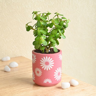 Elegant Jade Plant In Ceramic Sunrise Pot