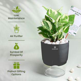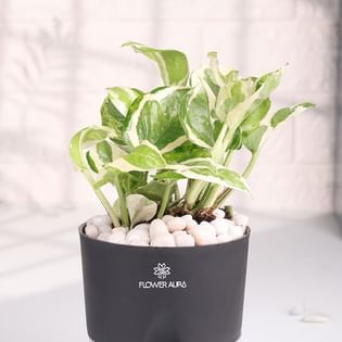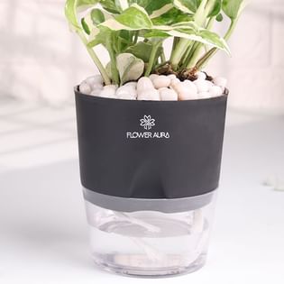 Elegant White Pothos In Black Self Watering Planter