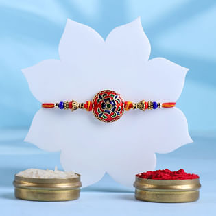 Regal Floral Rakhi With Almonds Raisins Treats