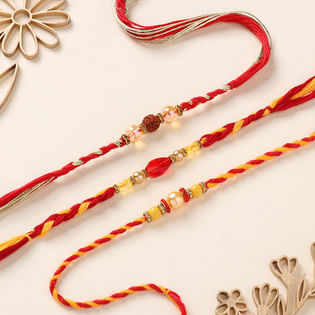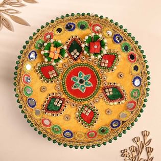 Stone Studded Rakhi Trio With Mirror Work Tika Thali