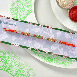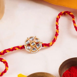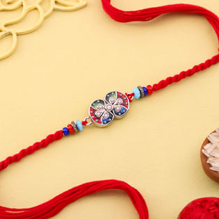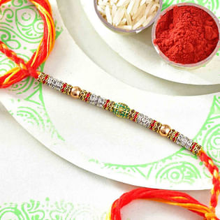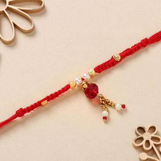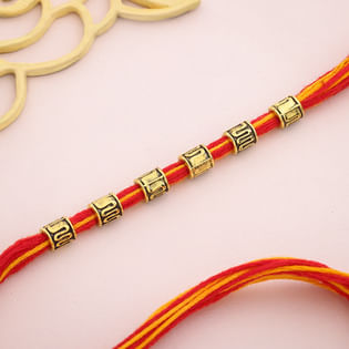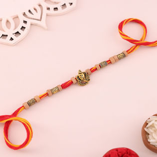 5 Shiny Rudraksha And Beaded Rakhi Set
