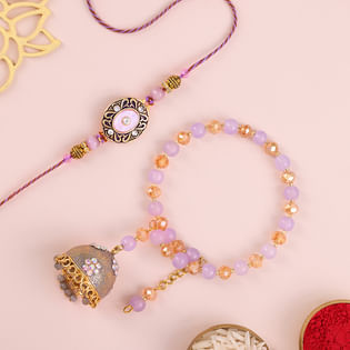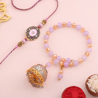 Lavender Beads Bhai Bhabhi Rakhi Set