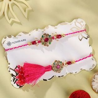 Floral Elegance Pink Bhaiya Bhabhi Rakhis