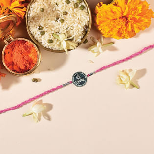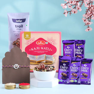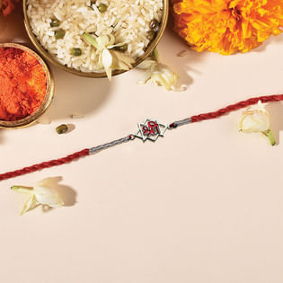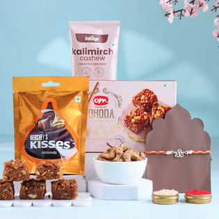 Divine Om Silver Rakhi N Sweet Savour Treat Hamper