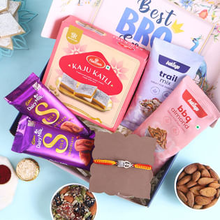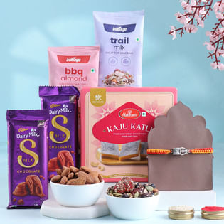 Divine Om Silver Rakhi N Choco Sweets Nuts Hamper