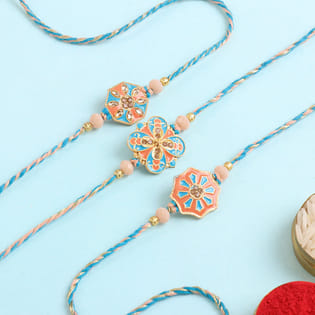 Divine Figures Trio Rakhi Set In Blue-Singapore