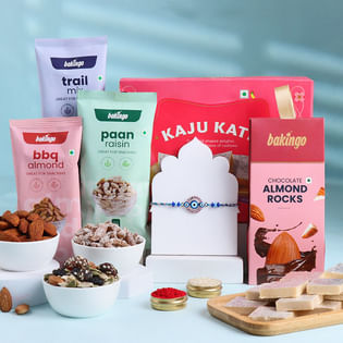 Evil Eye Rakhi With Sweet N Nutty Delights-Overseas