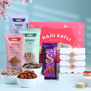 Pastel Rakhi Trio With Nuts N Choco Treats-Overseas